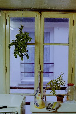The day before leaving on our month long vacation, I harvested my verbena and hung it to dry in the kitchen. I put a few branches in water hoping roots would sprout. They didn't. Too bad.